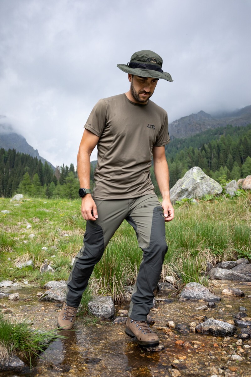 Dotato di cordino di regolazione elastico e di 2 bottoni per ripiegare le parti laterali della falda.