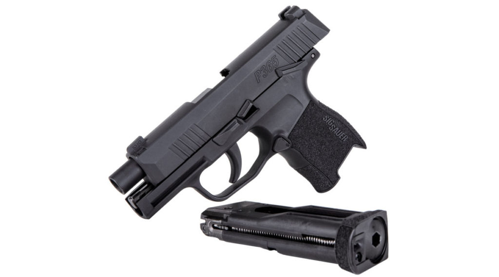 La P365 di Sig Sauer è una pistola a co2 ad aria compressa semiautomatica, con fusto in polimero e carrello in metallo completamente scarrellante. Dotata di sicura manuale ambidestra e tacche di mira a tre punti verdi. Il caricatore dove alloggia la bomboletta da 12g, ha una capienza di 12 sfere d'acciaio cal 4,5mm. Pistola dalle dimensioni e peso identica all'originale pluripremiata cal 9mm. Caratteristiche: Modello: Sig Sauer P365 Potenza: < 7,5 joule Funzionamento: Bombolette CO2 da 12 gr Scarrellante: Si Canna: liscia Velocità: 295 fps Calibro: 4,5 mm Capacità caricatore: 12 colpi Lunghezza: 146 mm Peso: 369g