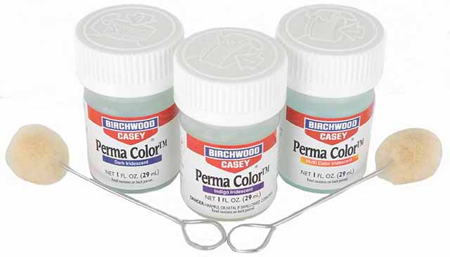 REPLICA LA FINITURA DELLA COLORAZIONE DELLA CUSTODIA SENZA RISCHI O IL TRADIZIONALE INDURIMENTO DEL COLORE DELLA CUSTODIA TRADIZIONALE. FACILE DA APPLICARE SU ACCIAIO. OTTIMO PER RICEVITORI, MINUTERIA E CANNE. IL KIT INCLUDE 3 – 1 FL.OZ. BOTTIGLIE. UNA BOTTIGLIA DI MULTI COLOR IRIDESCENT, INDIGO IRIDESCENT E UNA BOTTIGLIA DI DARK IRIDESCENT.